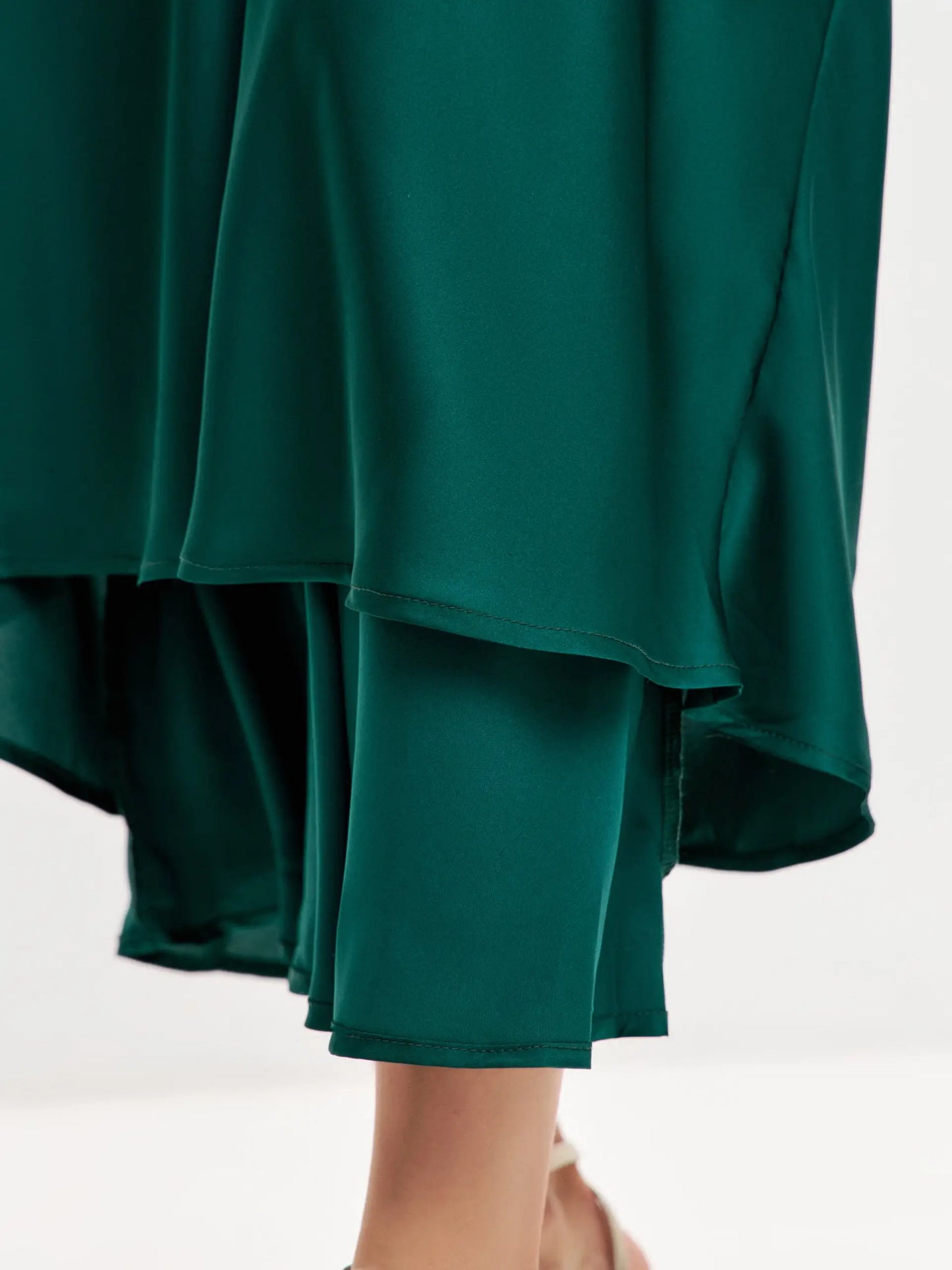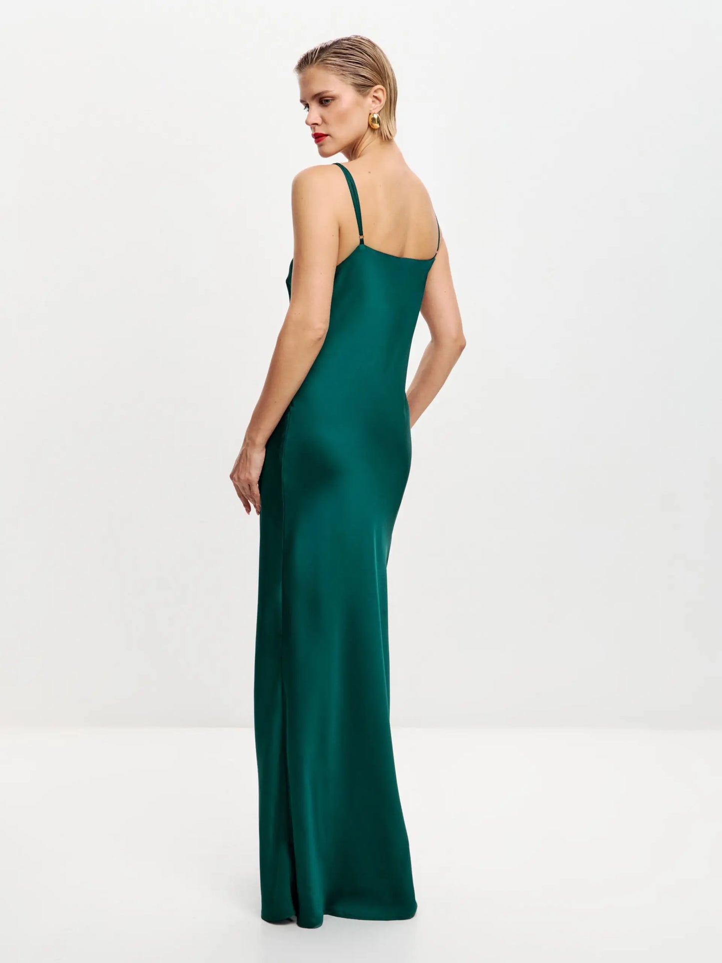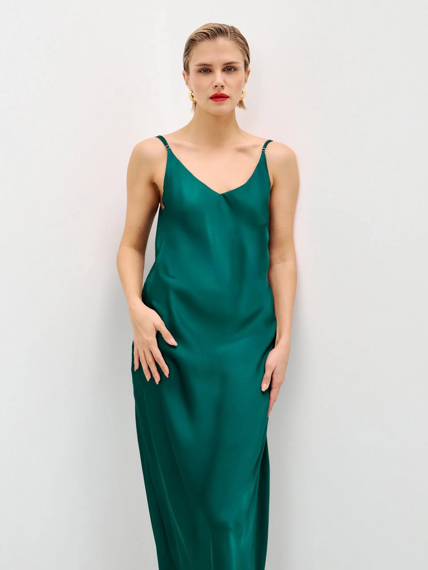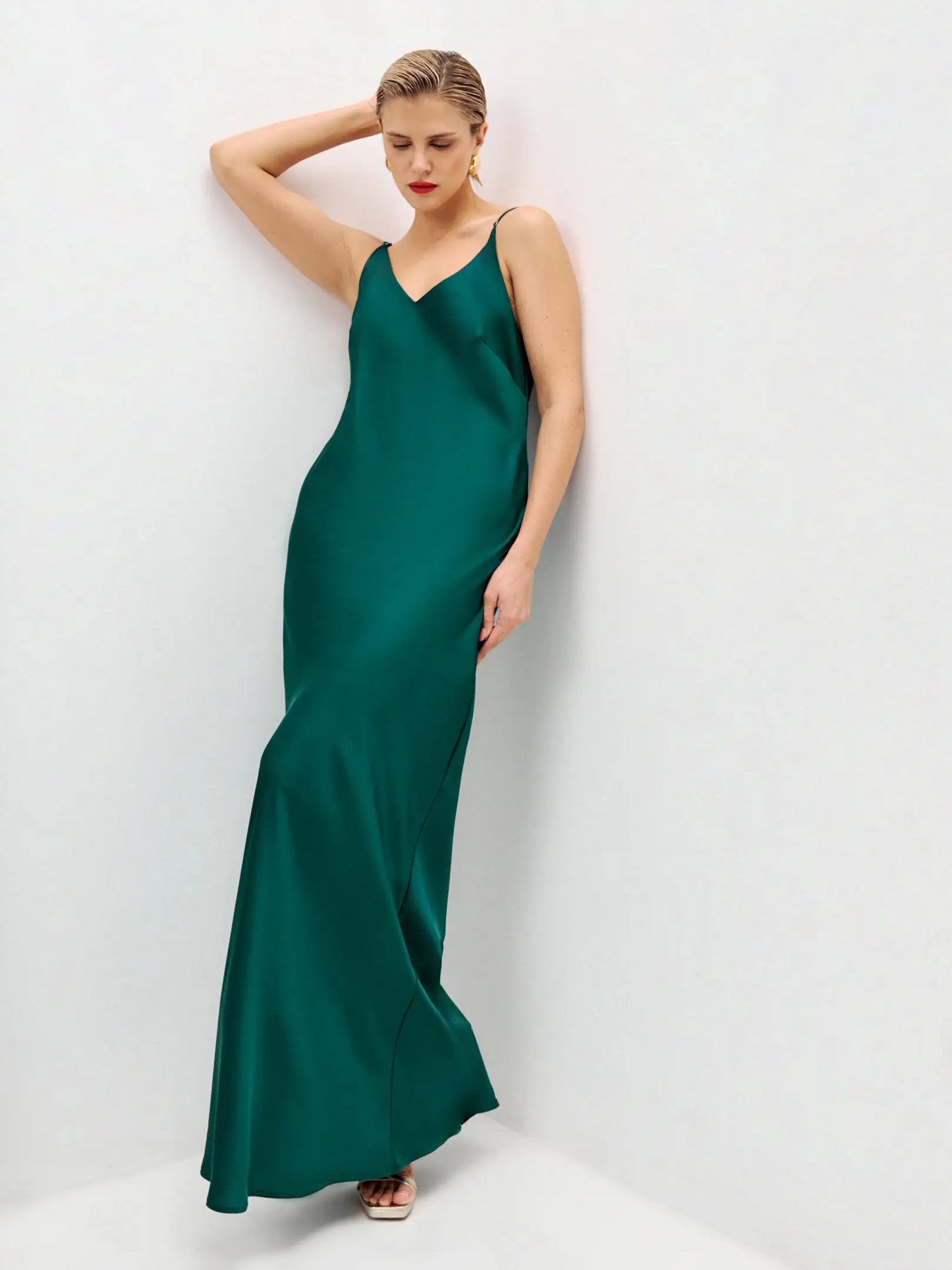 Malachite maxi double-layered satin slip dress with V-neck 'Marigold'